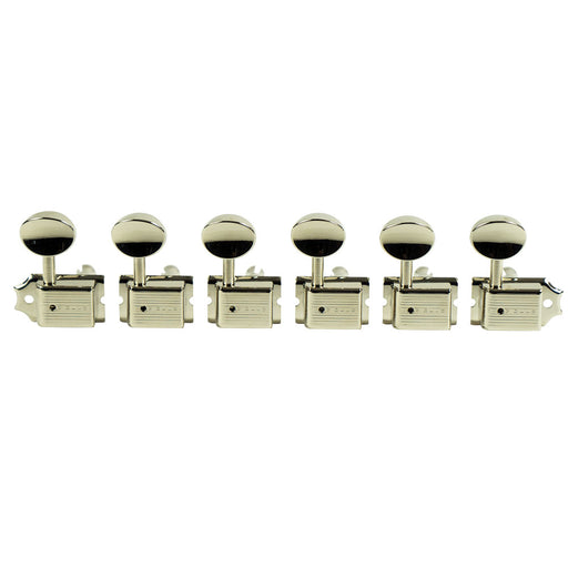 This Kluson® 6-in-line tuning machine set has oval metal (butter bean-shaped) buttons and the improved 15:1 gear ratio for more stable and accurate...