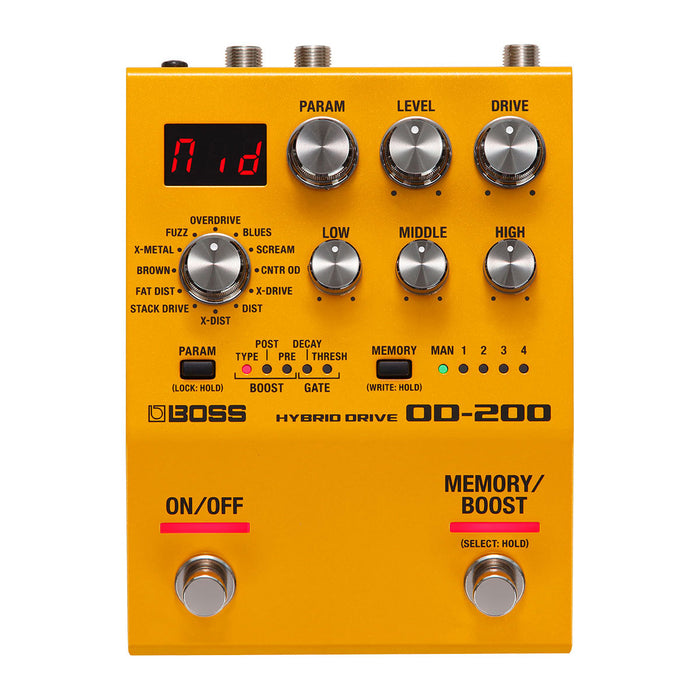 The OD-200 Hybrid Drive brings next-level sound, feel, and flexibility to overdrive and distortion, combining decades of BOSS tone expertise with innovative technologies. Powered by hybrid analog/digital circuitry, this dream pedal delivers any drive tone you can imagine via 12 primary modes, 15 boost types, series/parallel gain paths, and more. There’s even an advanced gate on board, ideal for both eliminating noise and adding tightness to high-gain drive tones.