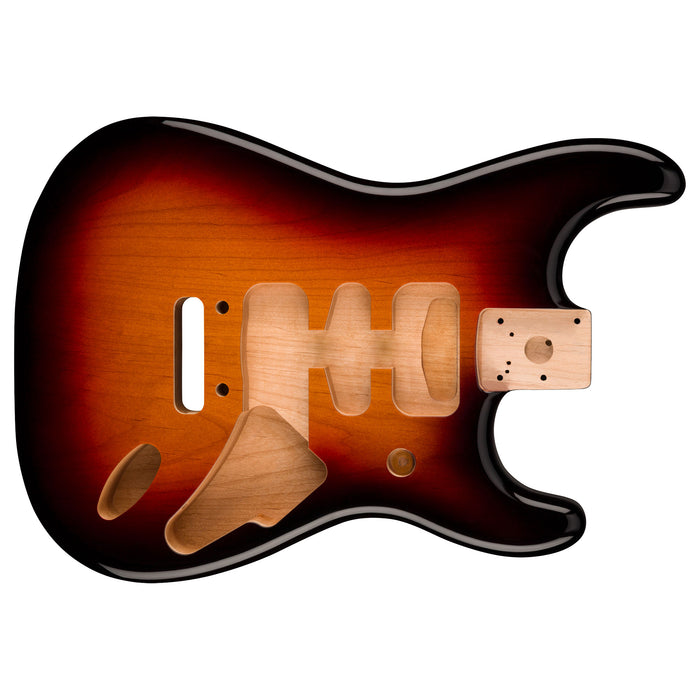 Crafted at our Ensenada, Mexico, manufacturing facility, this genuine Fender Deluxe Series Stratocaster® guitar body is routed for an HSH pickup configuration and is pre-drilled for a 2-point tremolo bridge with 2.22" wide spacing. Featuring a contoured neck heel for easy access to the upper frets. It's topped with a gloss polyester finish for added durability on any stage.