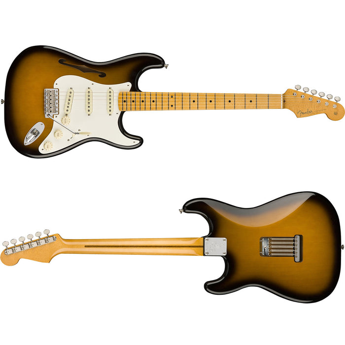 Bringing to life the vision of one of the most respected guitarists in the world, the Eric Johnson Signature Stratocaster Thinline is the perfect marriage between a semi-hollow body and a traditional Stratocaster. Johnson is famous in guitar circles for questing for his ideal tone—liquid and articulate, it perfectly complements the playing style that earned his place in the modern guitar pantheon. In 2015 he approached us to co-design a lightweight, resonant instrument that combines the tones of his favorite semi-hollowbody guitars and his Stratocaster. Two years later, we hit the formula for tonal nirvana with the Eric Johnson Signature Stratocaster Thinline.