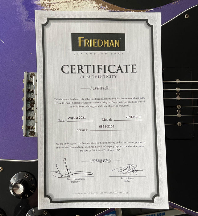 Friedman Vintage T Electric Guitar Heavy Aged Metallic Purple 0821-2105