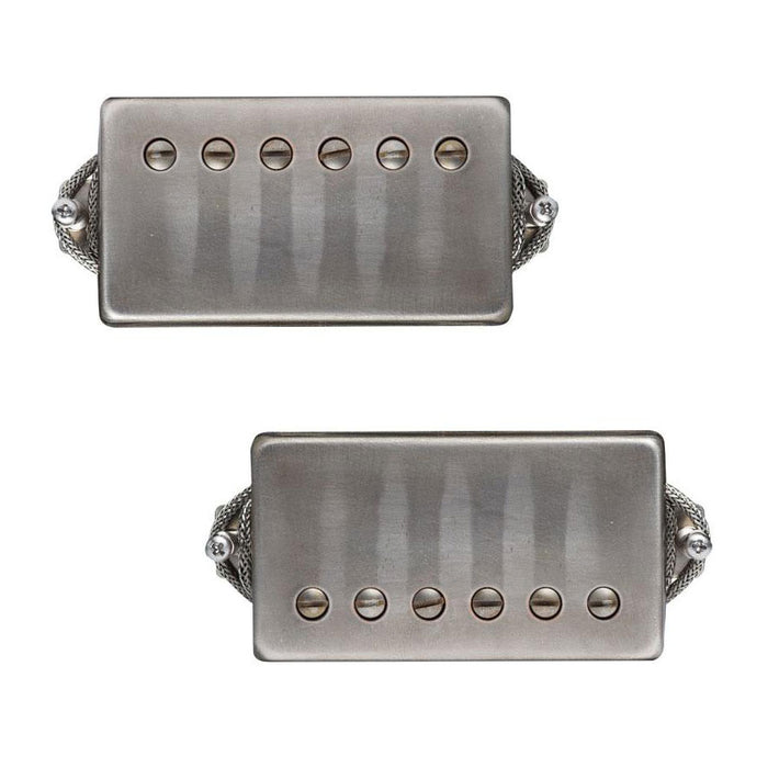 Plus, it has less ohms than the Lollartron, giving you something closer to a single coil tone. That makes it superb for high gain amp playing because it doesn't compress when you beat on it. Instead, you get a pleasing and distinct distortion sound when pushed. Try it in a 335 with a Super Reverb for extra cut. Or mix with a traditional single coil to expand your sonic range. Made with Alnico 5 magnets in the neck and Alnico 8 magnets in the bridge. Covers are nickel silver. Sold as singles or as sets, and comes in a wide range of cover options. Single conductor braided shield lead wire and 4 conductor lead wire is available. Available as sets or singles.