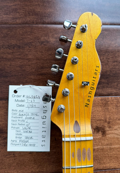 Nash Guitars Model T-63 Humbucker Neck Black over 3-Tone Maple Neck NG5824