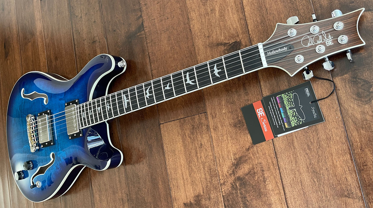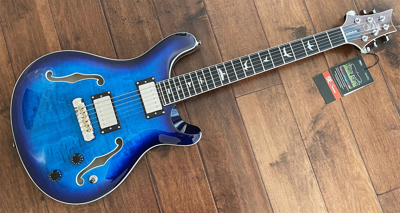 The SE Hollowbody II combines the power and stability of a solid-body electric guitar with the captivating resonance of a hollowbody instrument. The 58/15 “S” pickups deliver clarity and balance that sound big and musical in the hollowbody platform. Designed to look as good as it sounds, the SE Hollowbody II also features a figured maple top and back and mahogany sides as well as a mahogany neck (set-neck construction) with PRS trademark bird inlays. Both hollowbody and solidbody players will feel at home with the SE Hollowbody II.