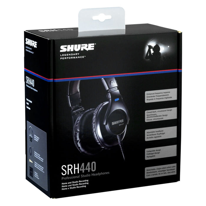 The SRH440 Professional Studio Headphones from Shure provide exceptional sound reproduction and comfort. Optimized for home and studio recording, SRH440 headphones reproduce accurate audio across an extended range. Impedance, power handling and sensitivity are all calibrated for professional audio devices such as DJ mixers, mixing consoles, and headphone amplifier. Includes carrying bag and threaded 1/4" (6.3mm) gold plated adapter.