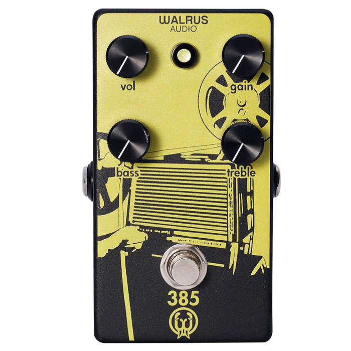 The 385 was developed to have the same simple but effective tone control as it’s grandfather. The amp has this as well but bass and treble are stacked behind the single tone knob. With our design breaking them up, we allow for a much wider array of tones to be achieved. The user is able to boost and cut bass and treble, allowing them to be creative with mid-frequency scoops and bumps. The pedal is internally running at 18v, which helps us nail the same dynamic feel of the amp in a stomp box. This means it is extremely sensitive to how hard you dig in – just like the amp.