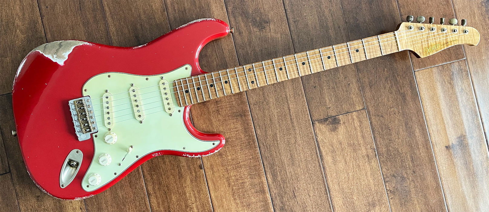 Thin nitro finish and available in light, medium, heavy and super heavy aging options. The aging process includes authentic checking patterns and wear marks for a naturally worn in appearance.